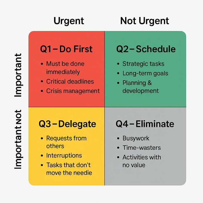 Treat these as non-negotiable commitments. Everything else can be scheduled later, delegated, or removed entirely.